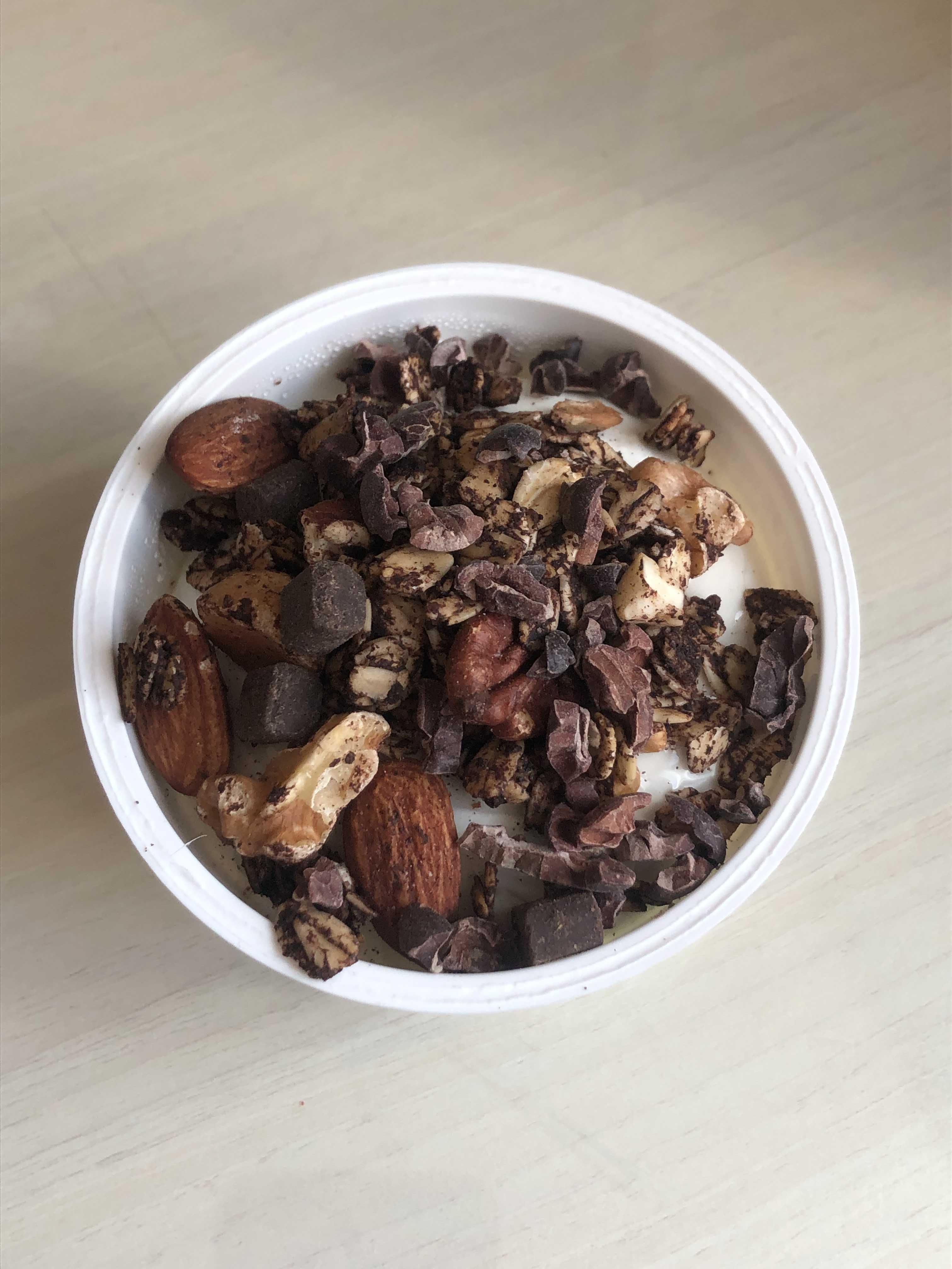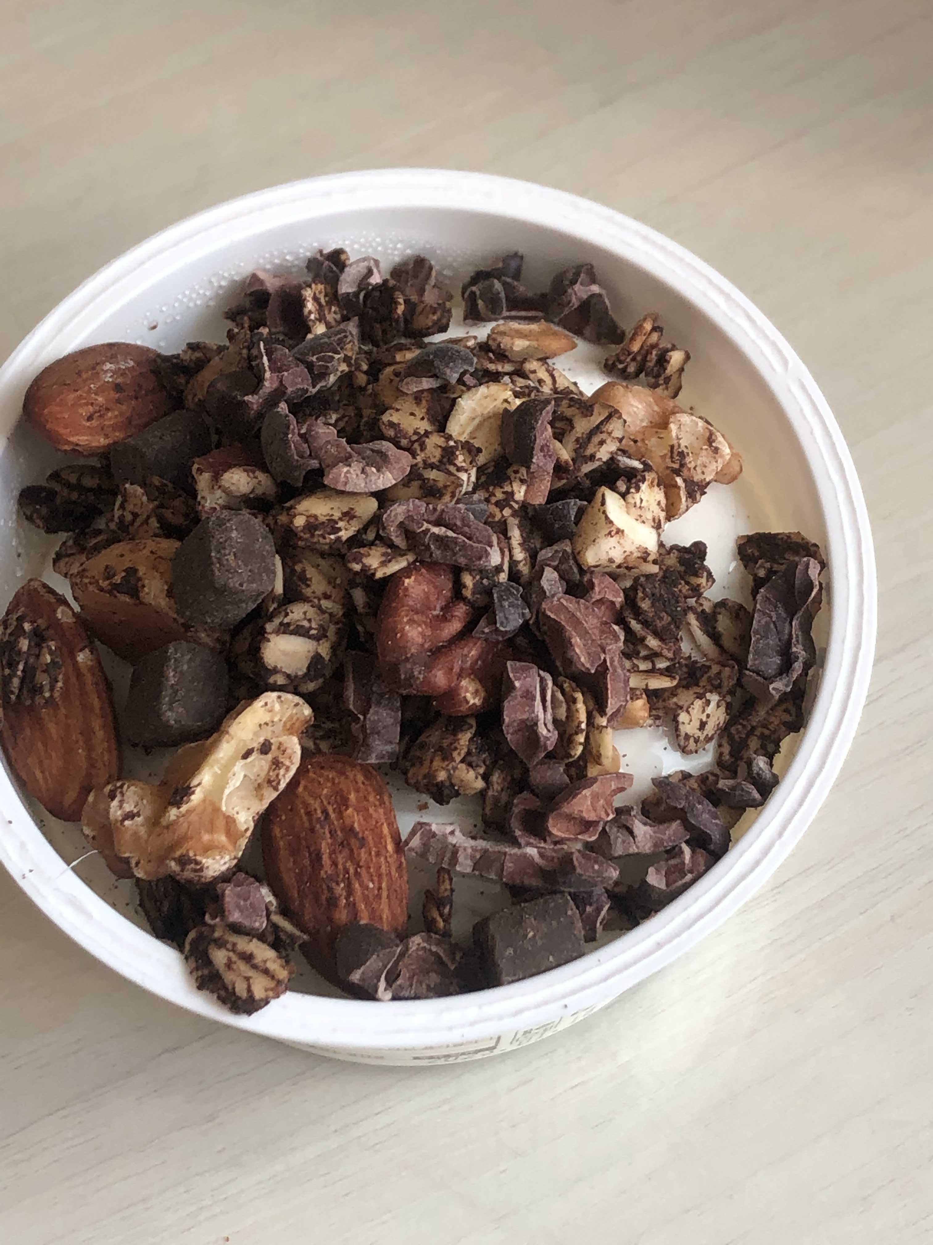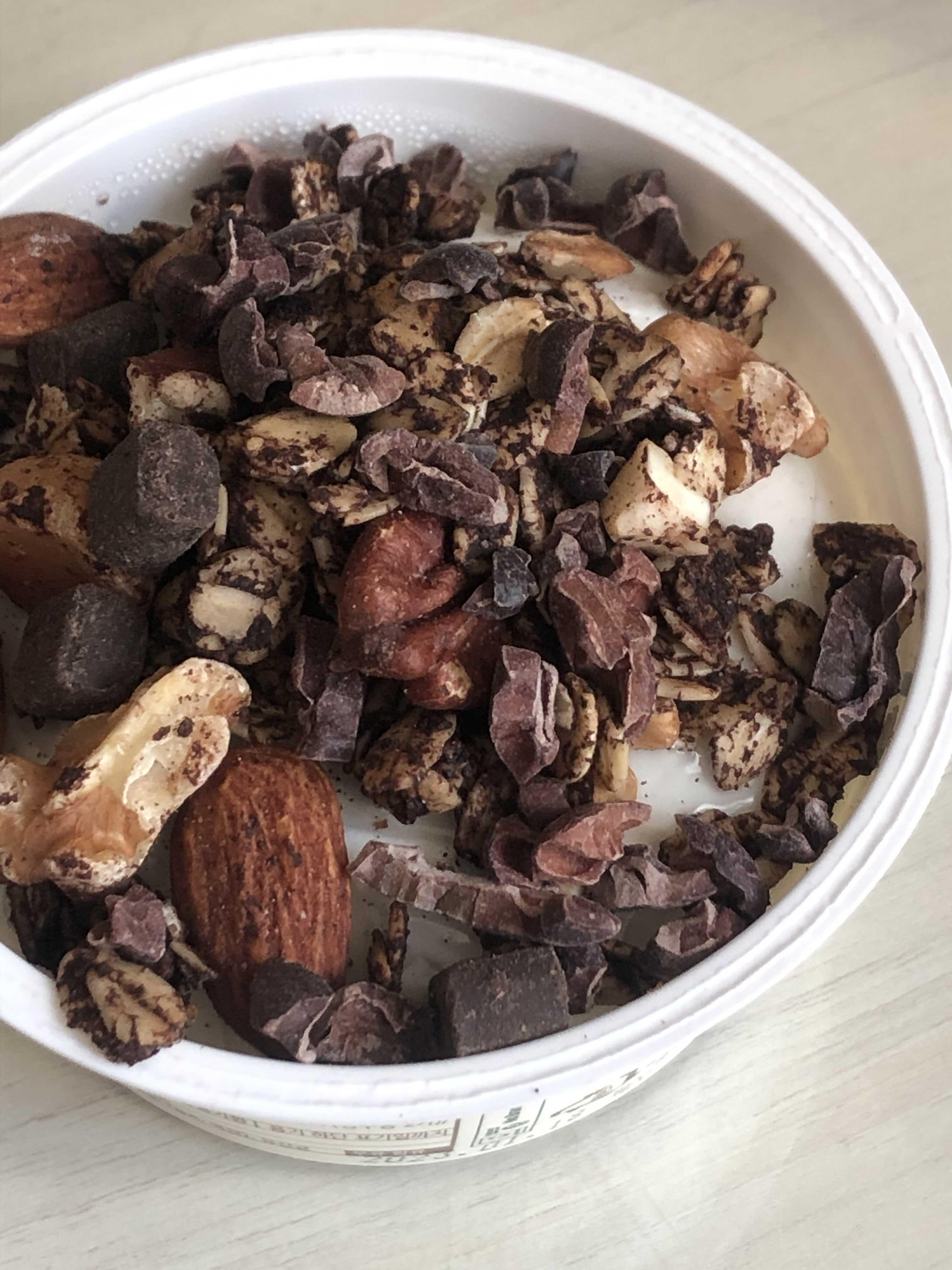 집에 있는 초코 그래놀라랑 카카오닙스, 꿀 넣어서 같이 먹었다.