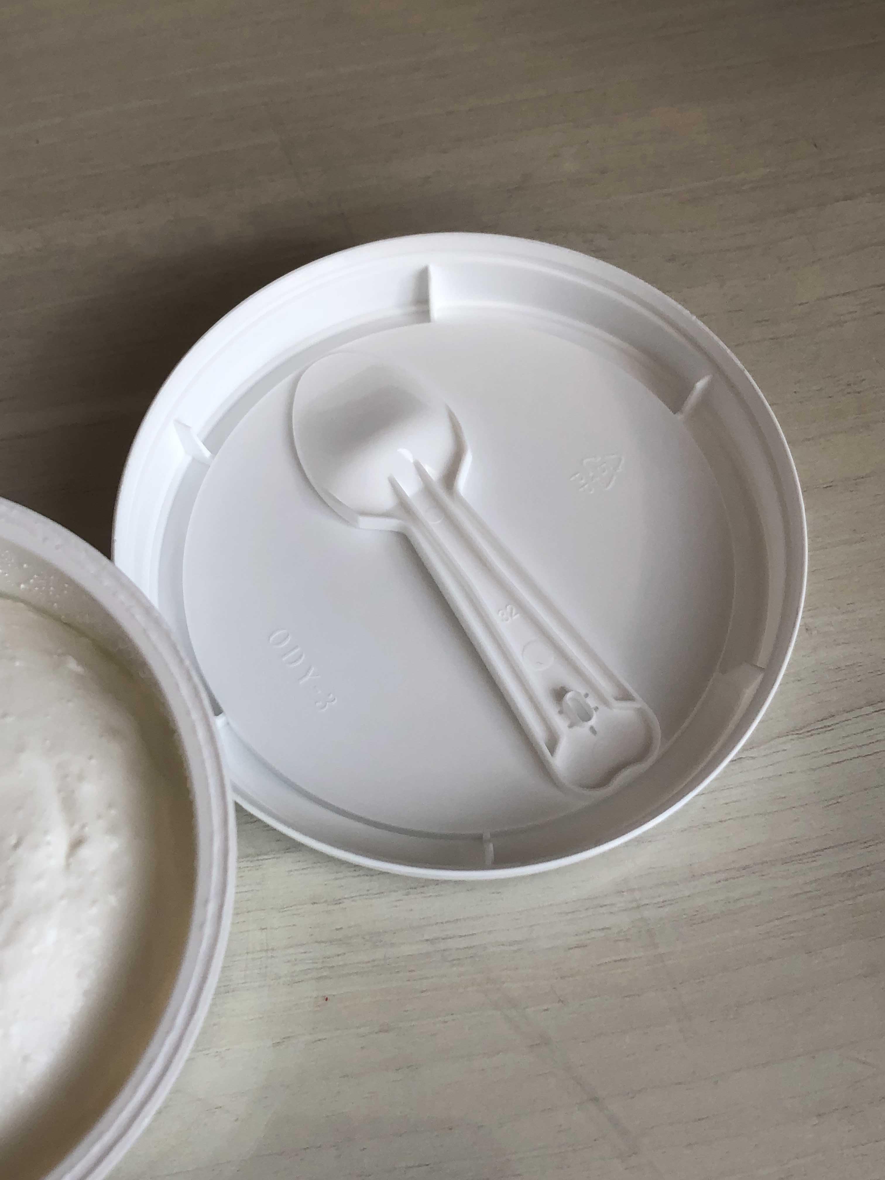 뚜껑에 작은 숟가락이 붙어있어서 먹을때도 간편하게 먹을 수 있다.