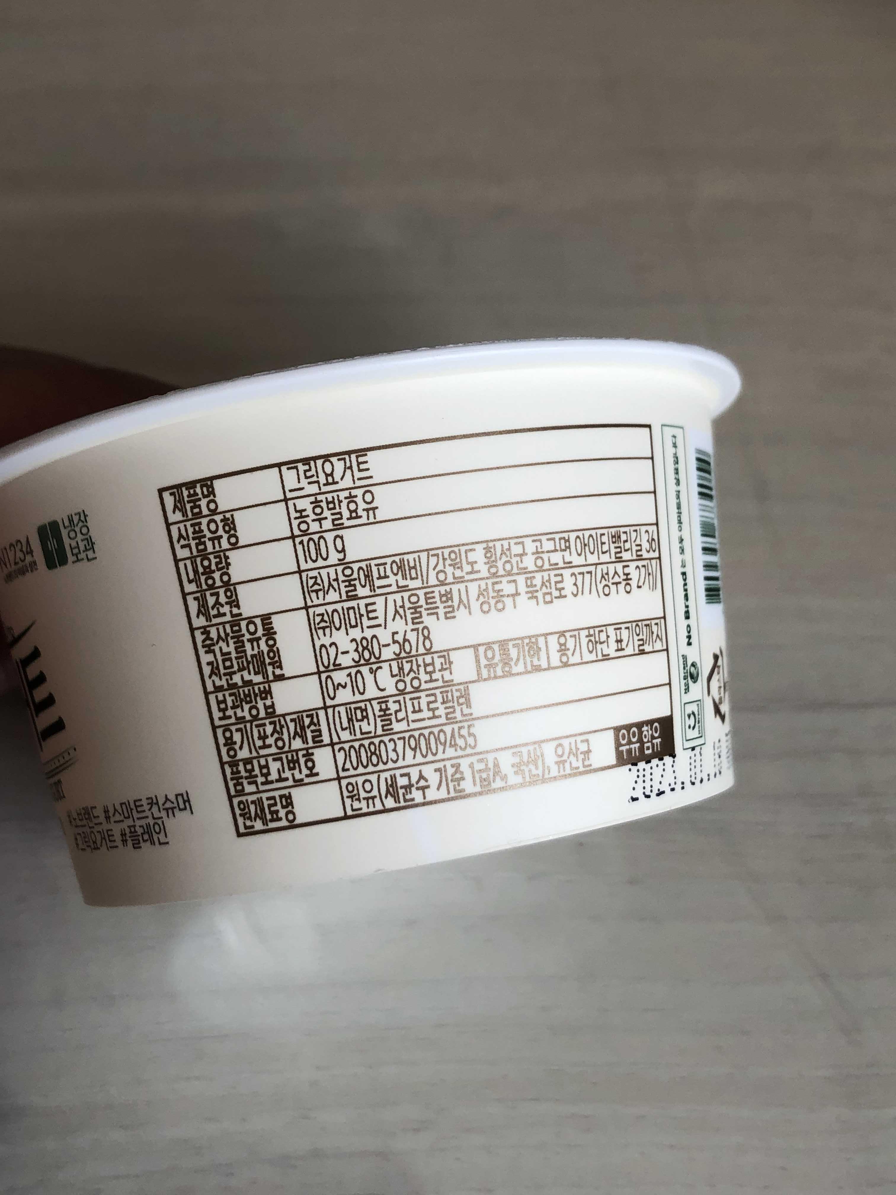 그릭요거트라고 적혀있는데 플레인 요거트처럼 줄줄 흘러내리는 묽은 요거트인 것에 종종 속은적이 있어서 신중하게 꾸덕한 요거트인거 확인하고 구매함.