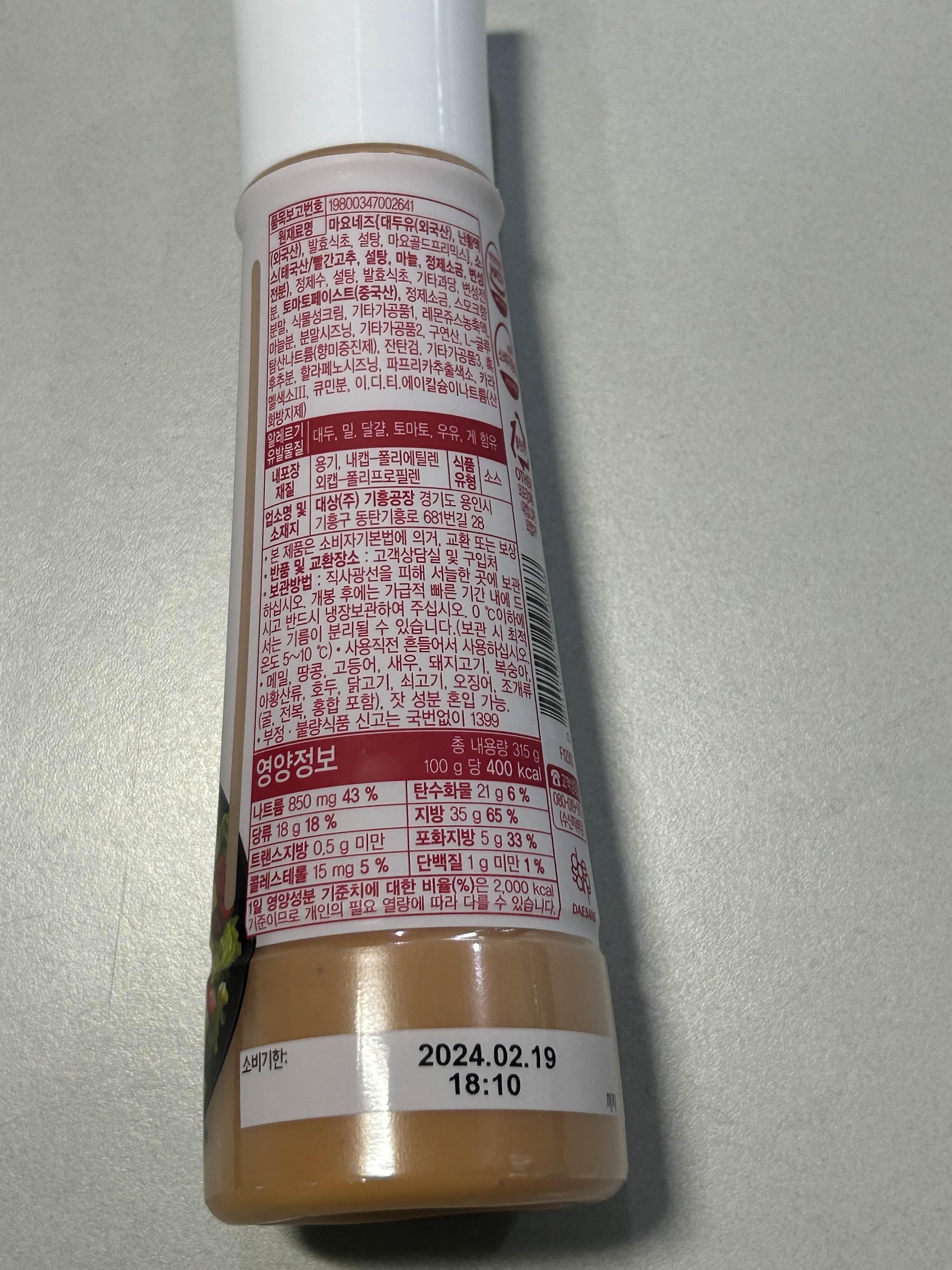 원재료는 마요네즈, 토마토 페이스트 등등이고,