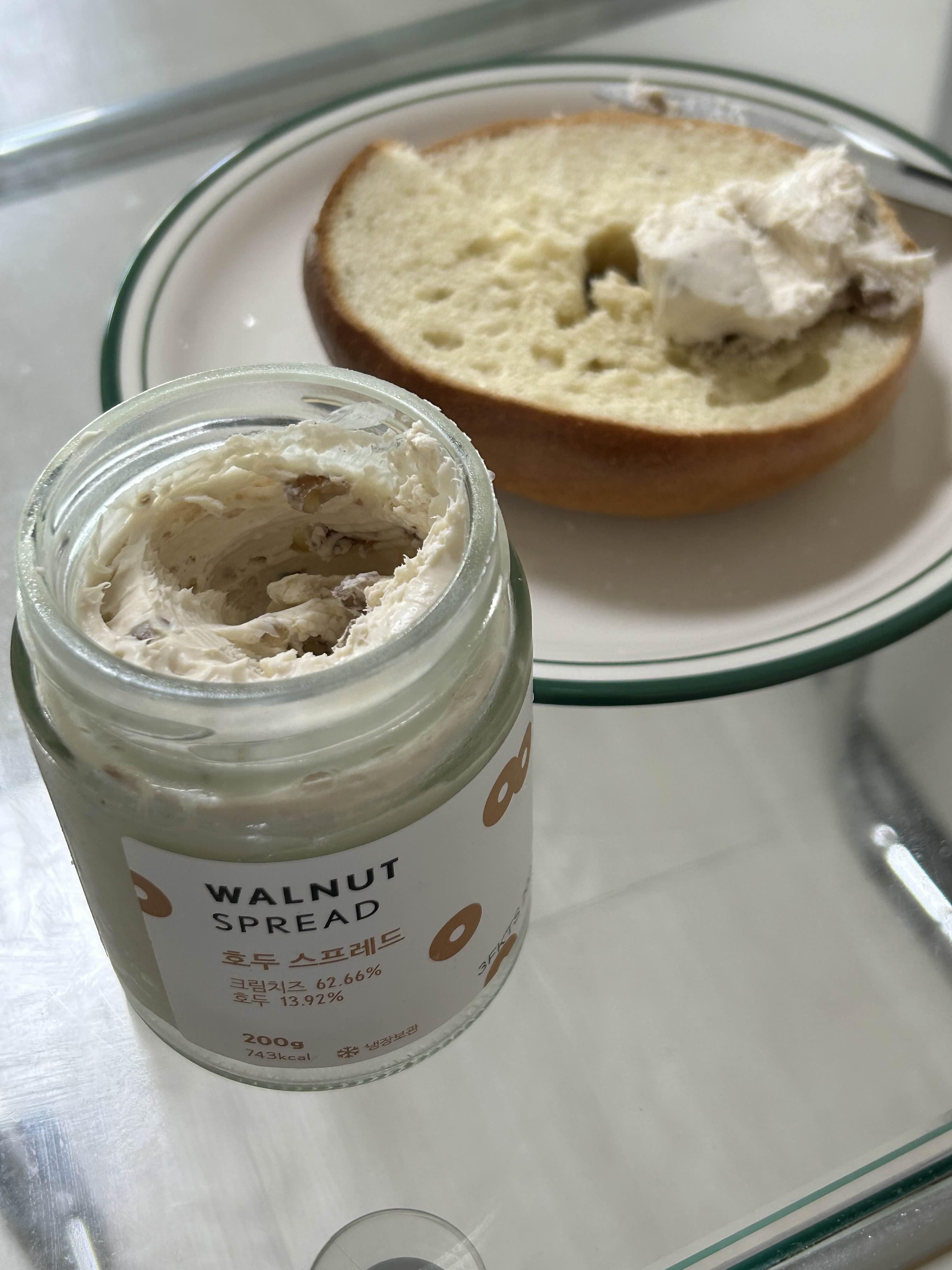 베이글이랑 아침마다 먹으려고 포비베이글 호두치즈 스프레드를 사두었다.