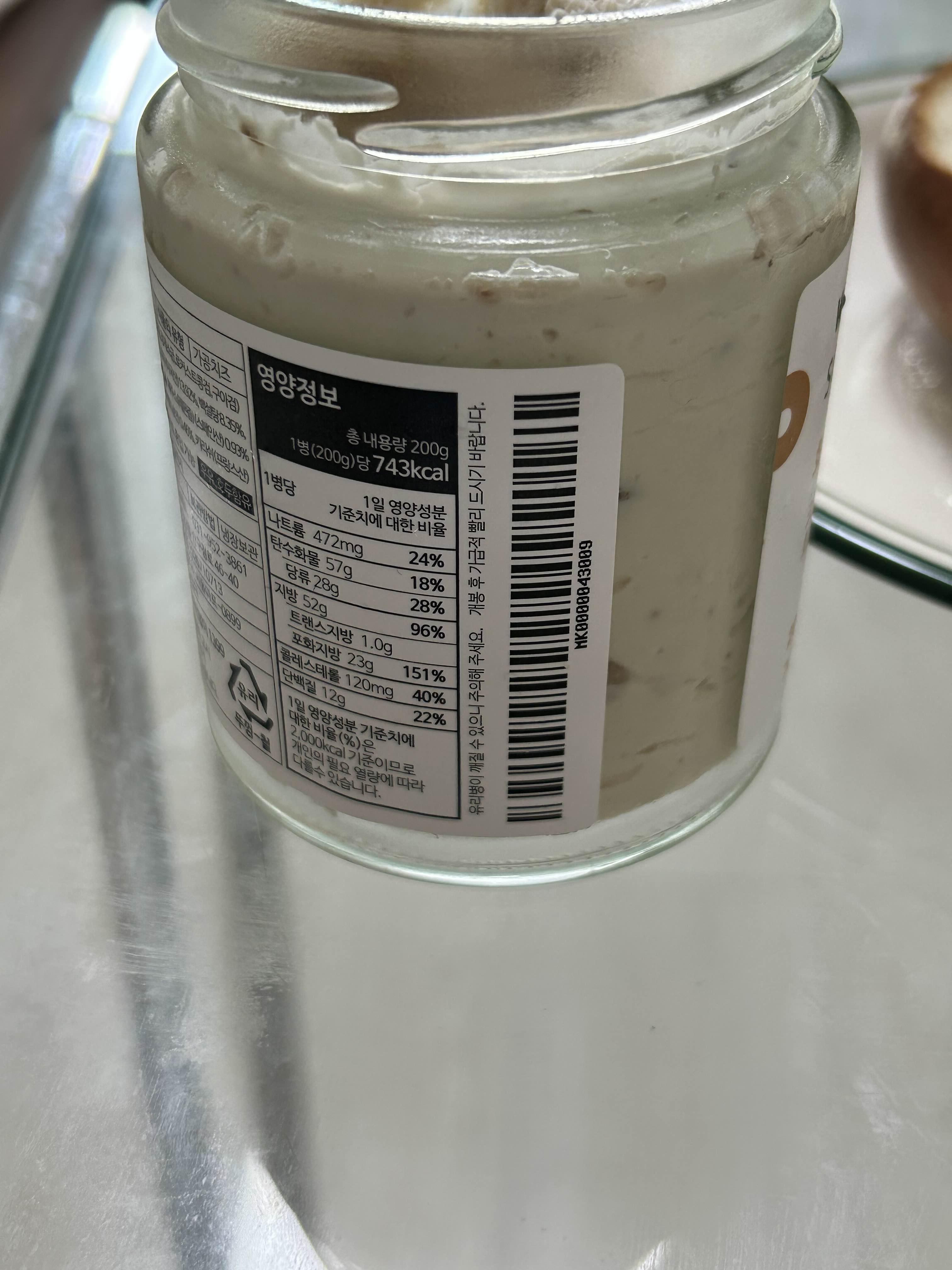 크림치즈 한 통에 용량은 200g이고 우유과 호두가 함유되어 있어 알레르기 있으면 주의