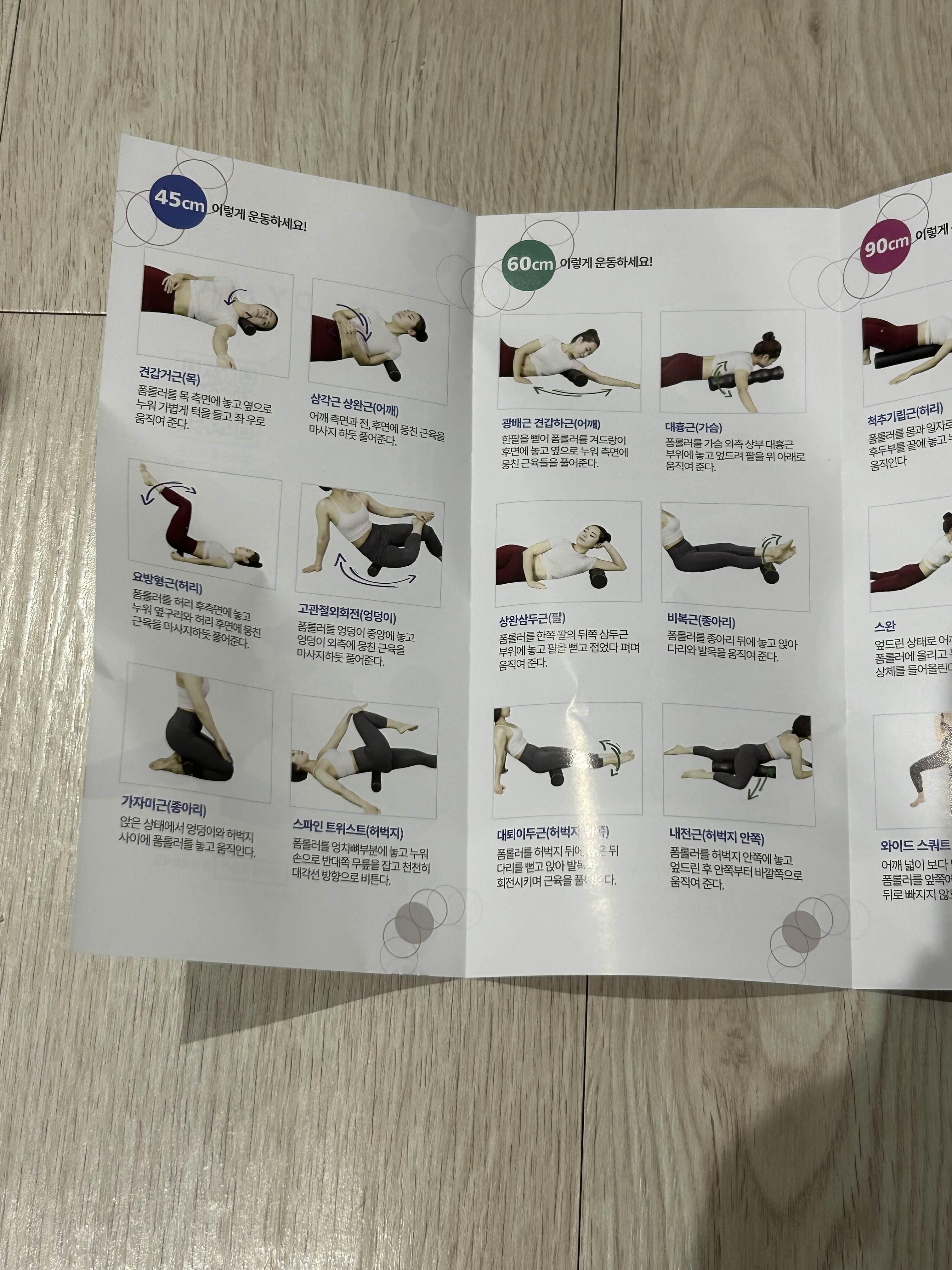 팜플렛에 폼롤러를 이용한 스트레칭 방법도 소개되어있다.