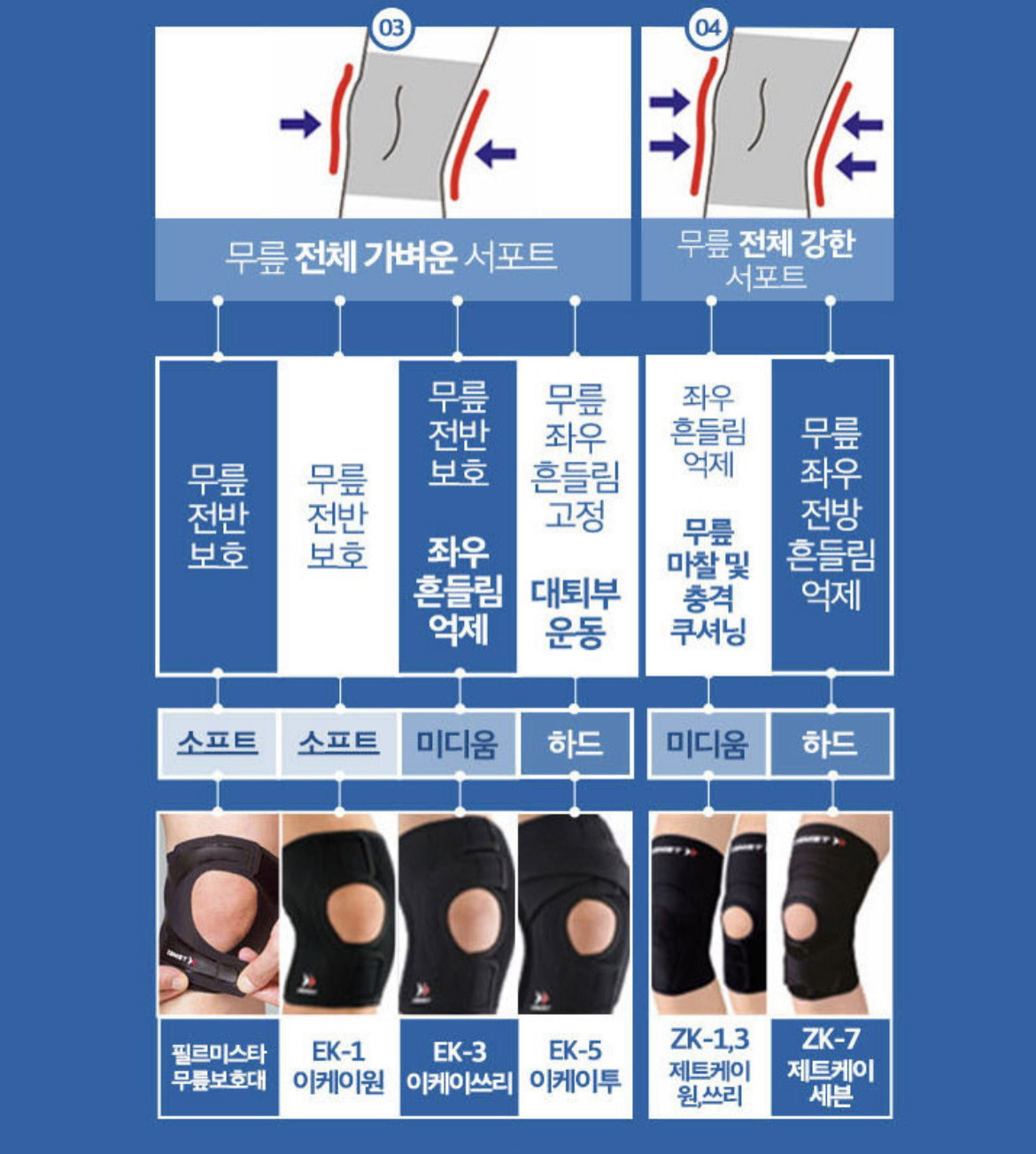 잠스트에는 무릎보호대가 한가지 종류가 아니라