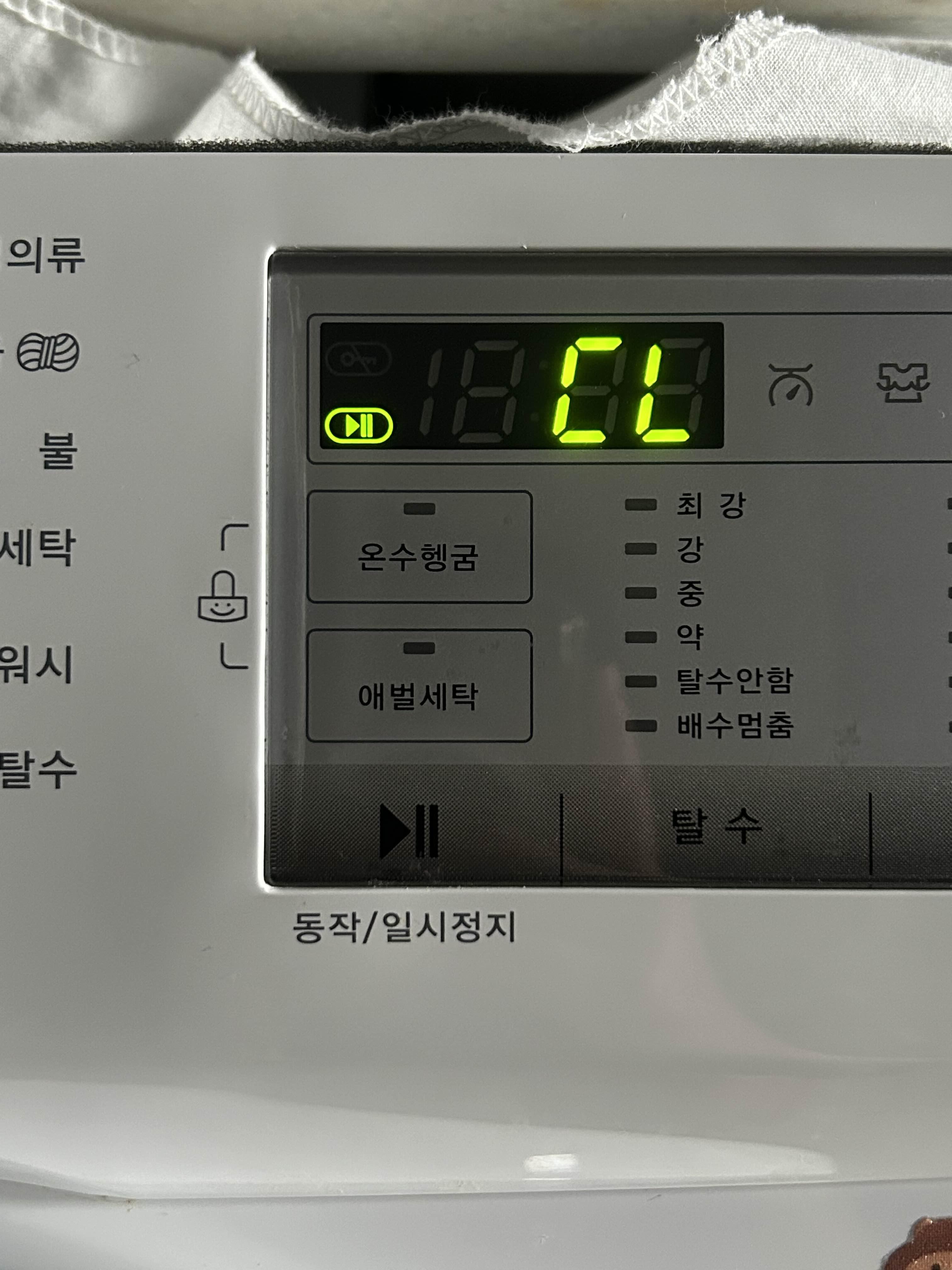 빨래를 하려고 하니까 전원버튼만 누를 수 있고 CL 코드만 화면에 뜨면서 작동이 되지 않았다.