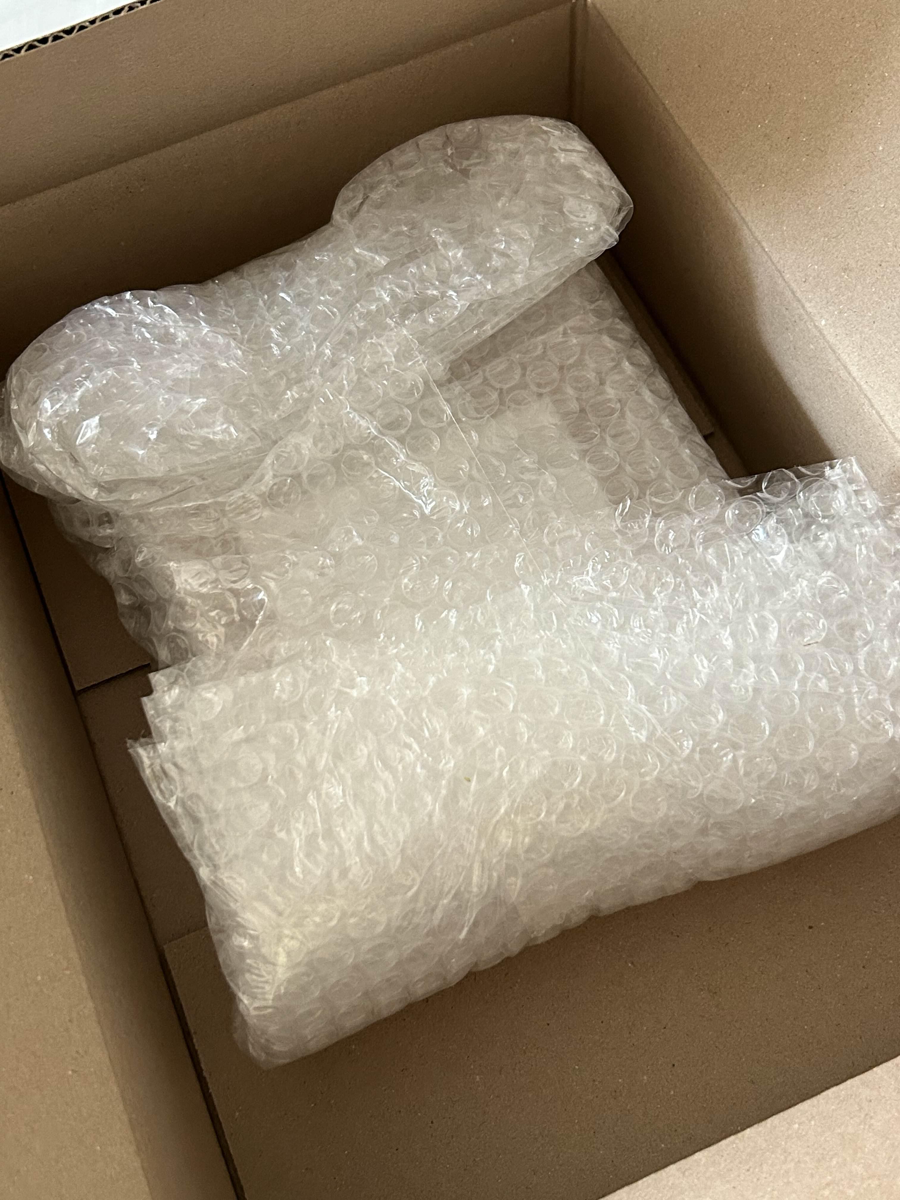 큰 박스 안에 그릇이 담긴 상자가 뽁뽁이로 감싸져있음.