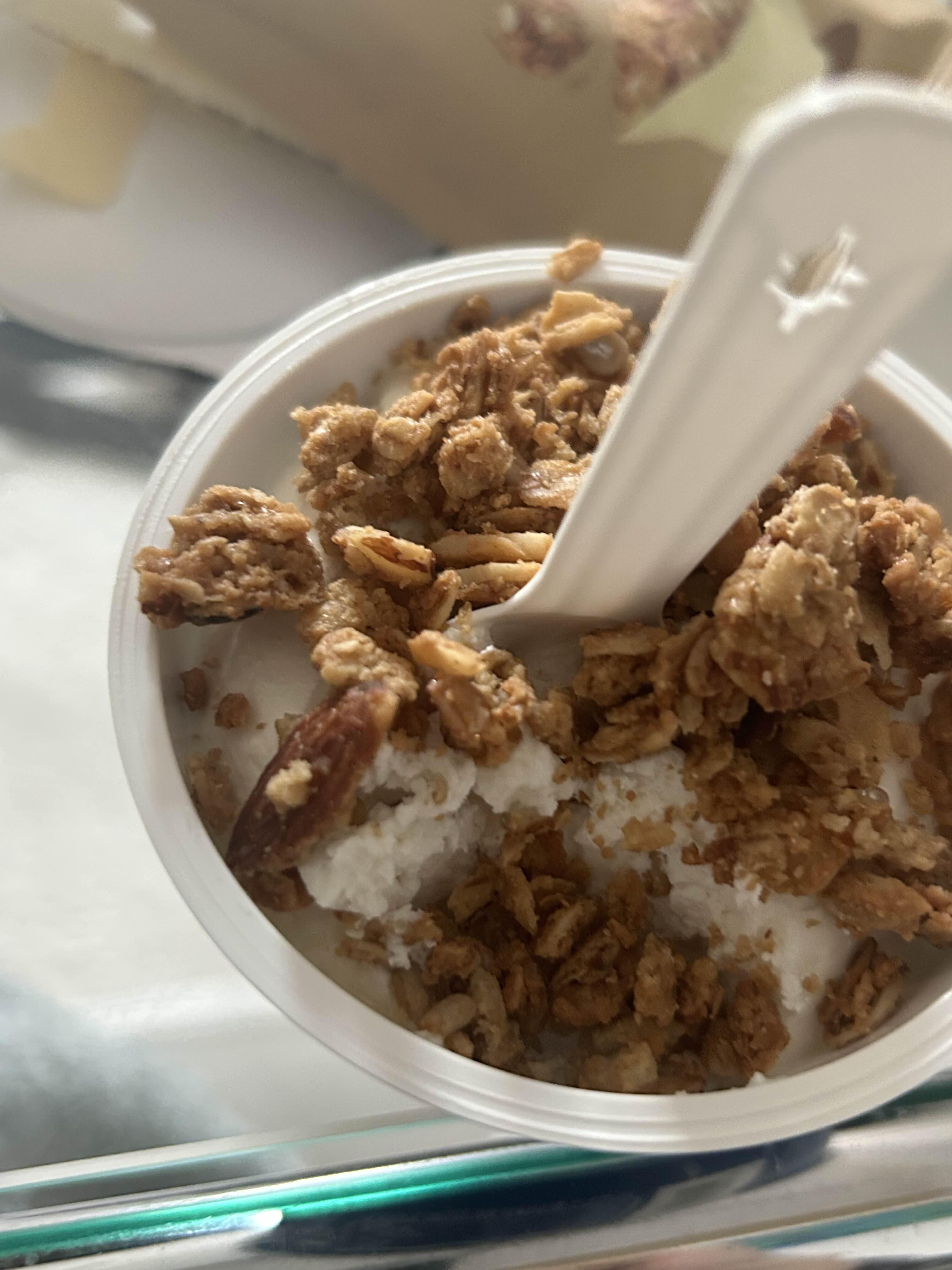용기가 작기때문에 그래놀라를 한번에 다 넣어버리면 흘리기도 하고 요거트와 같이 먹기에도 불편하다.