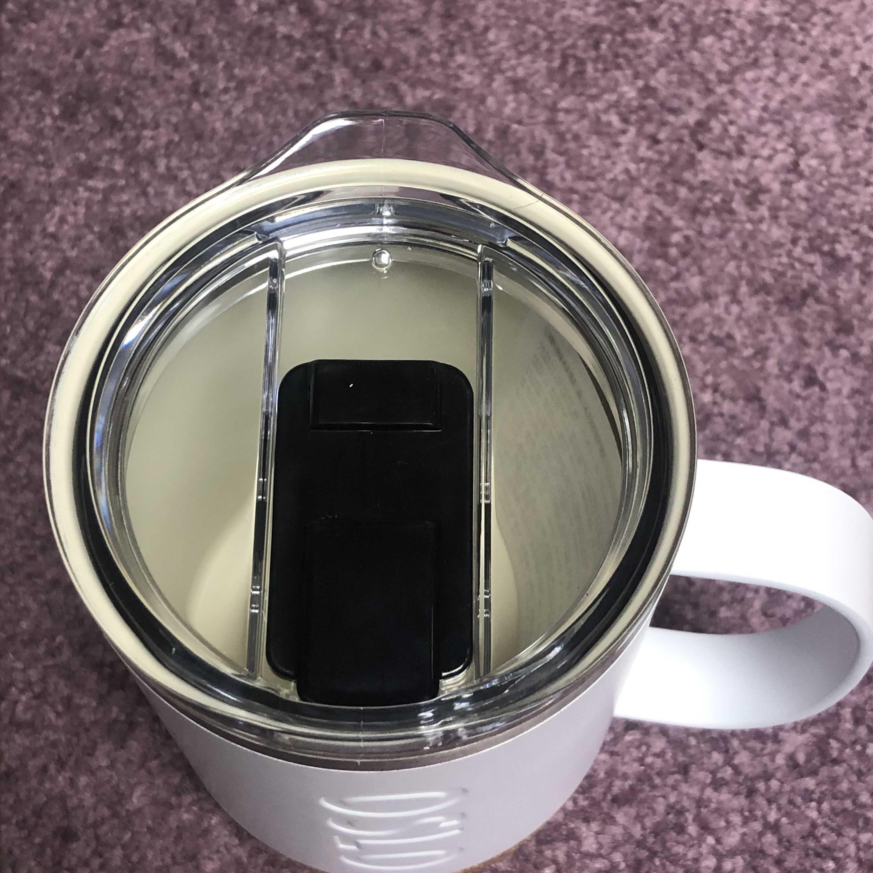 안은 기존 다른 텀블러들과는 다르게 자기로 코팅 비스무리하게 되어 있어 디자인이 깔끔하다. 안이 스테인리스 그대로이면 뭔가 쇠맛 날 것 같고 보기에 그닥인데 이렇게 디자인 되어 있어서 텀블러가 컵같아서 더 유용하게 잘 쓸 수 있는 것 같음.