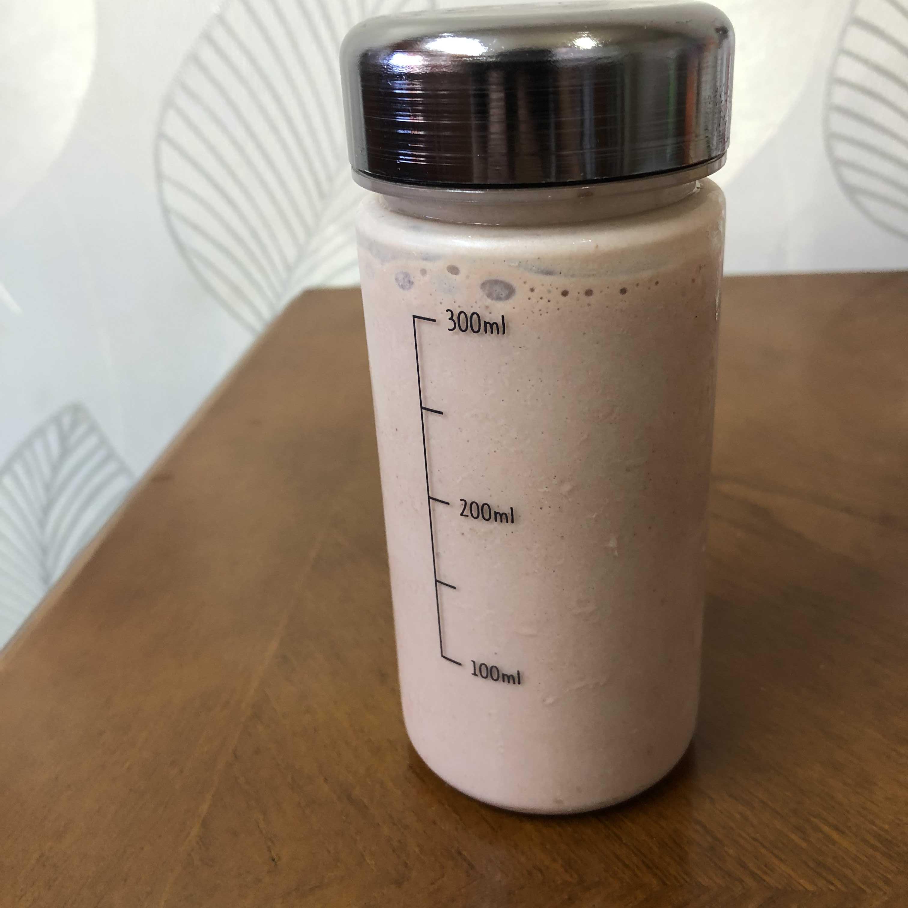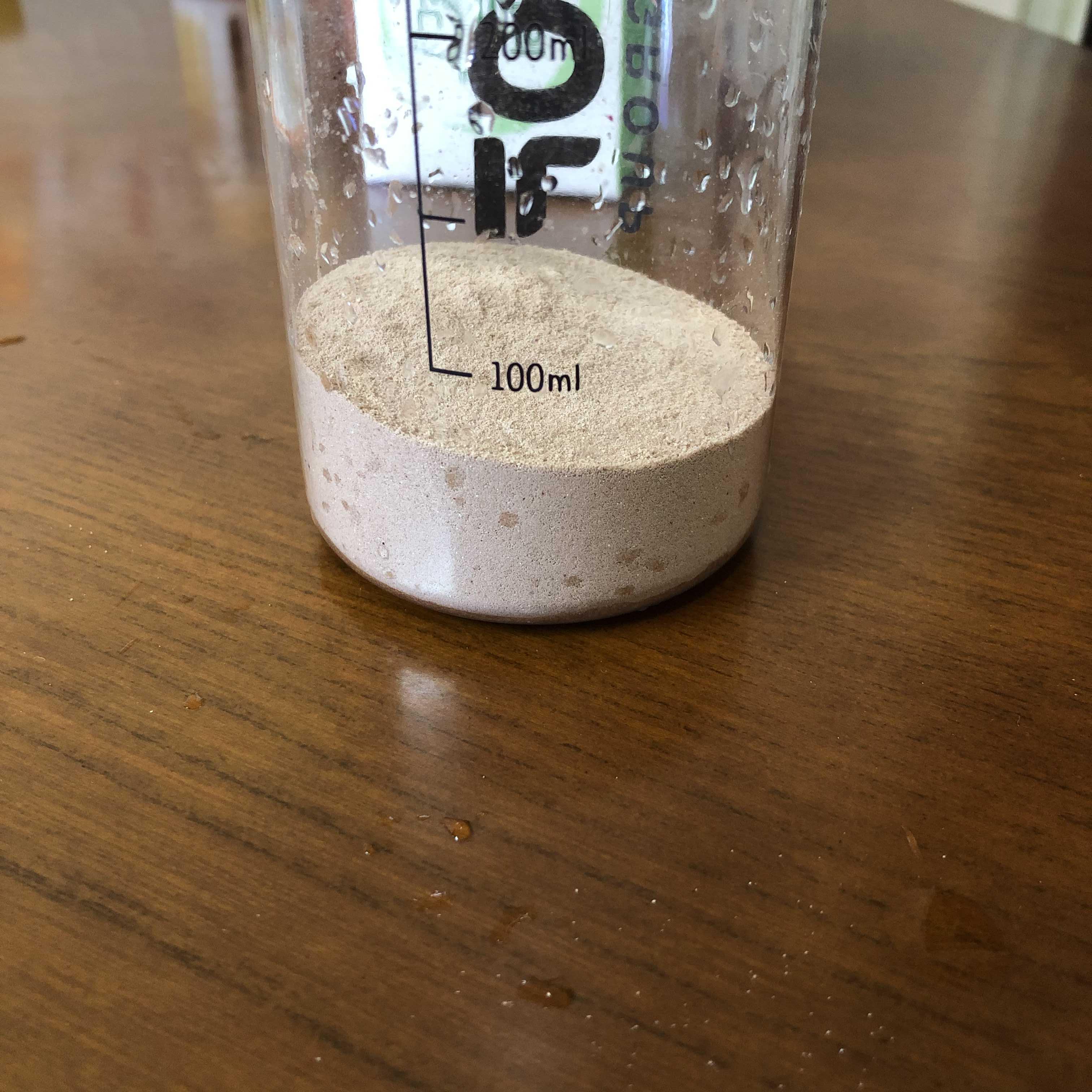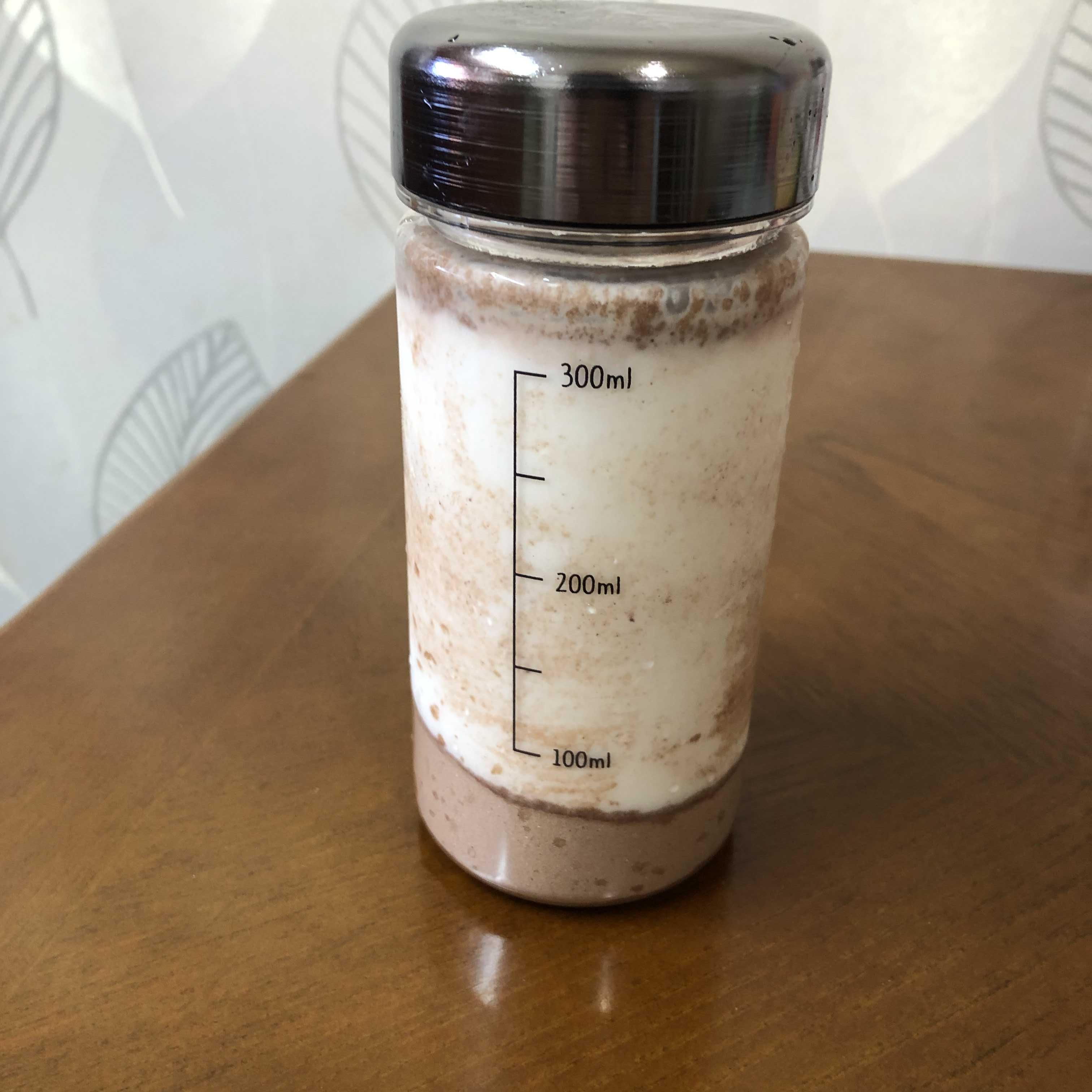 아까 가루만 넣었을때 50밀리미터정도였는데 우유까지 넣었을 때 300밀리미터 조금 더 넘었음.